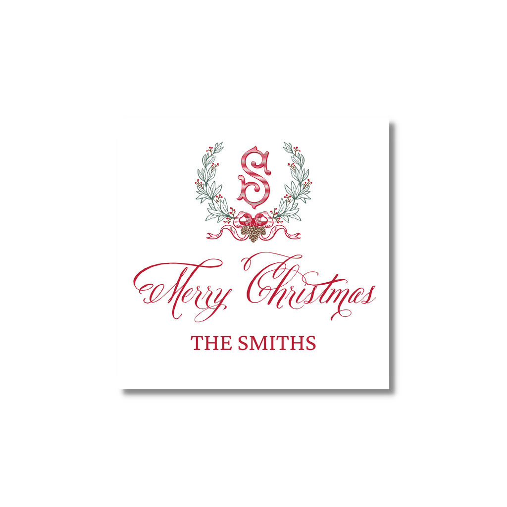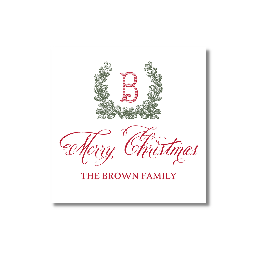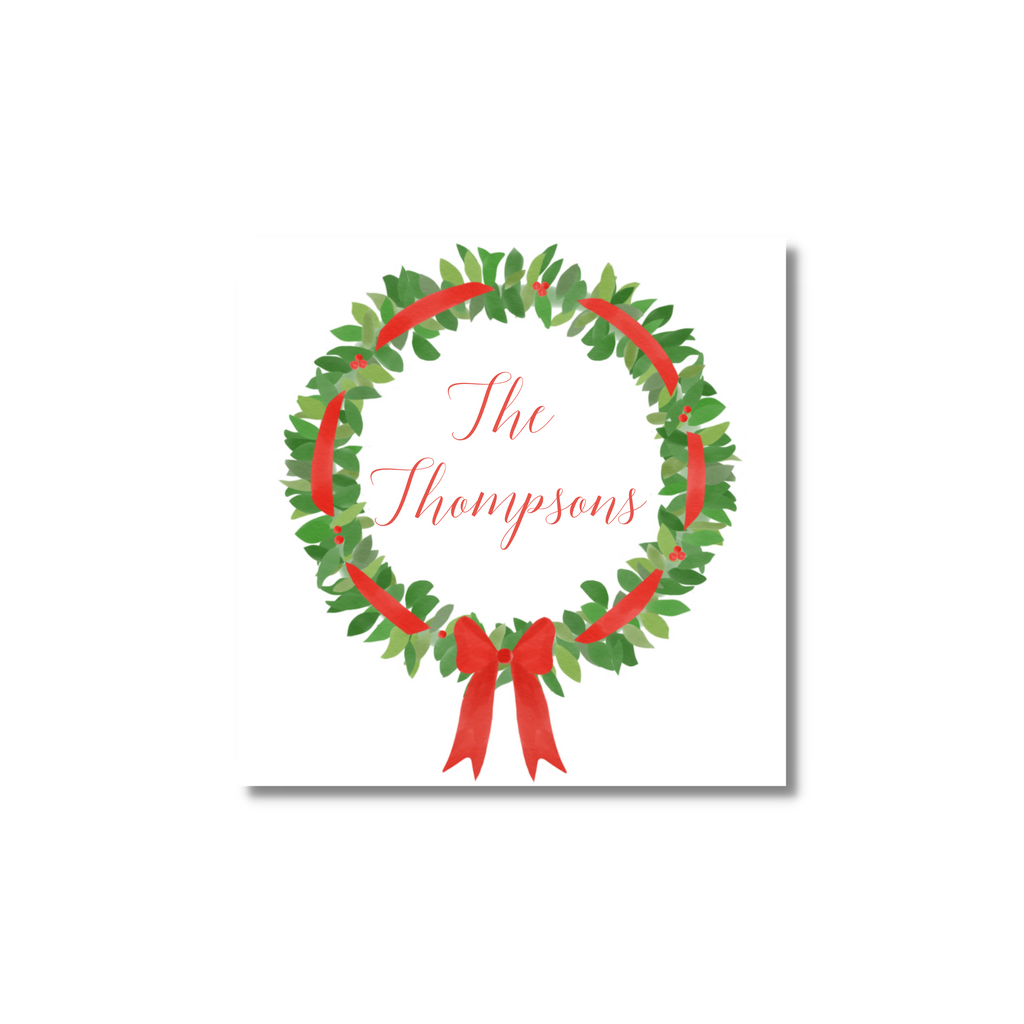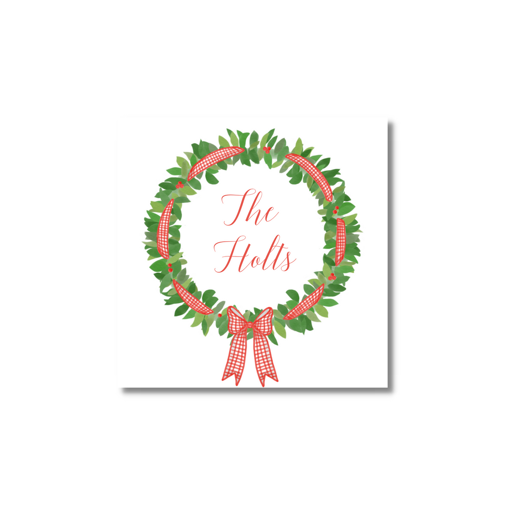 Red and Green Magnolia Wreath - Christmas Gift Tag