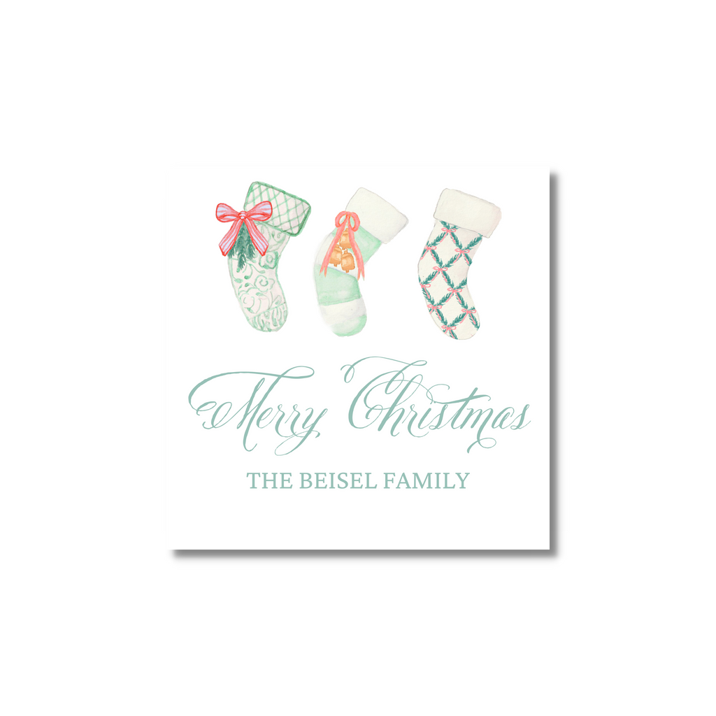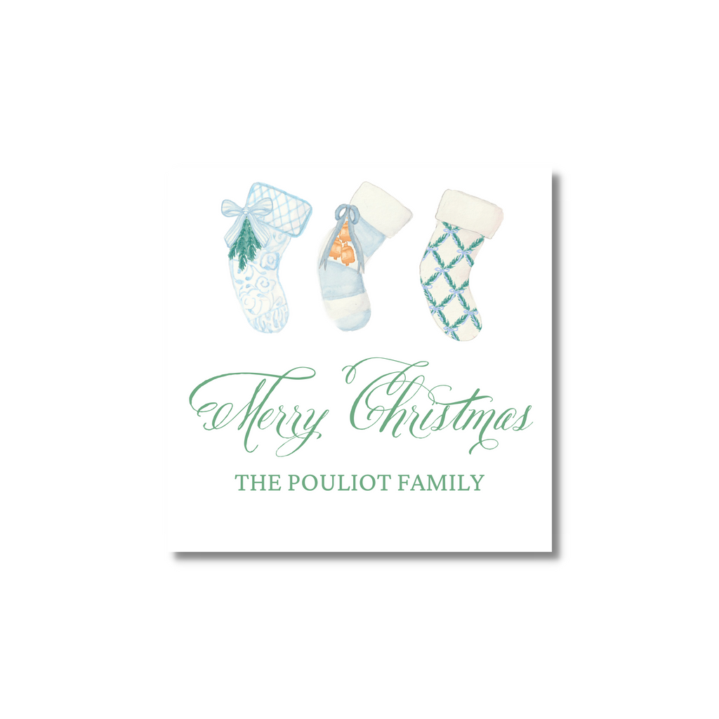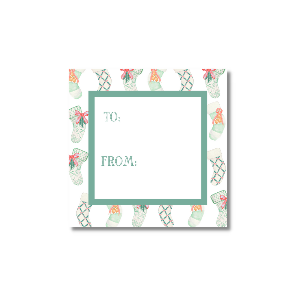 Green Stockings To/From Script Font - Christmas Gift Tag